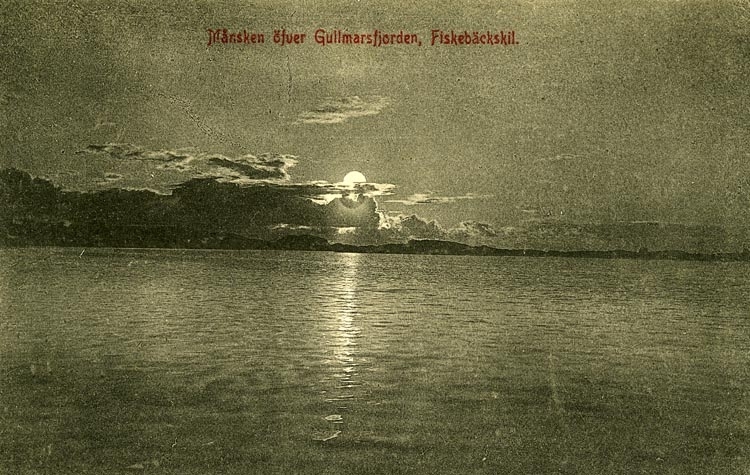 Notering på kortet: Månsken öfver Gullmarsfjorden, Fiskebäckskil.