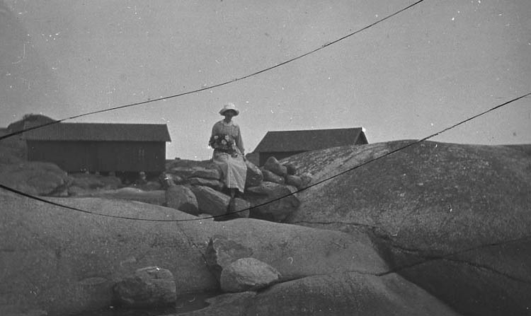 Rossö. "Rossö med sjöbodar, även här synes bergen blankslipade och släta."