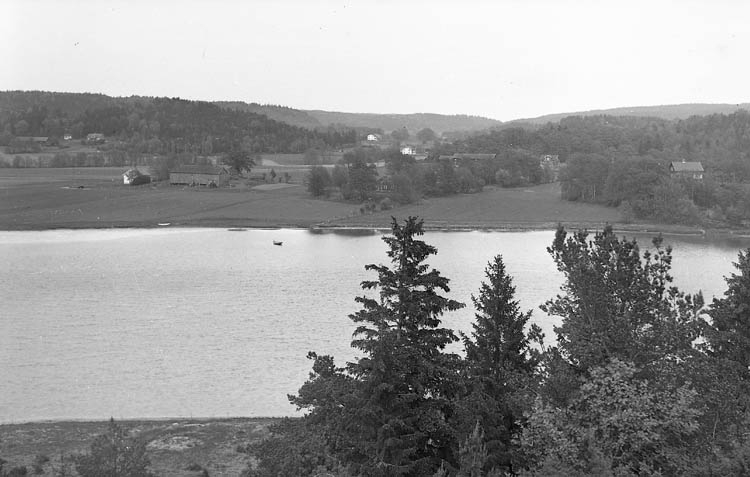 Enligt Bengt Lundins noteringar: "Restenäs. Utsikt från Strandön mot strand (utan text och moln). Vykort KGH Foto BL 1376".
