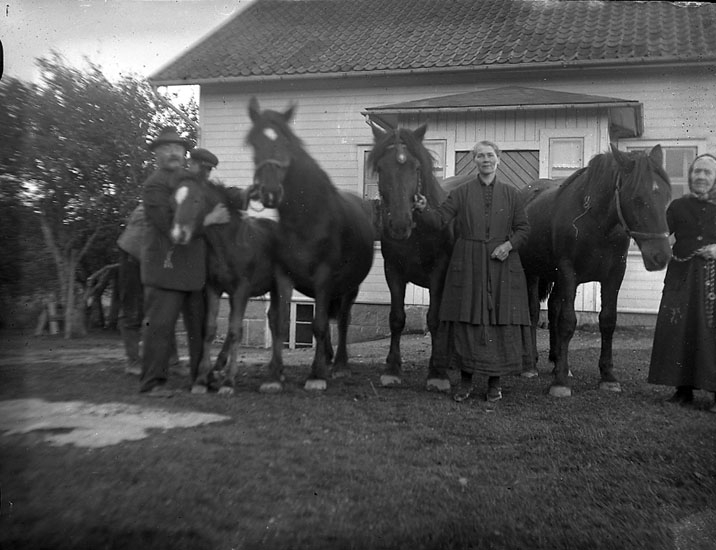 Enligt notering: "En familj och deras hästar".