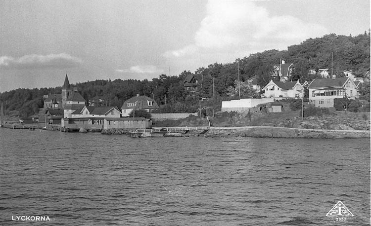 Enligt Bengt Lundins noteringar: "Lyckorna. Kyrkan - Badhusen - Agnesberg. Vykort TF 3957 BL 266".