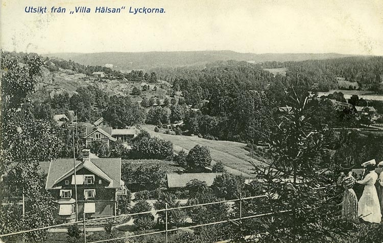 Enligt Bengt Lundins noteringar: "Utsikt från Villan Hälsan. Lyckorna".