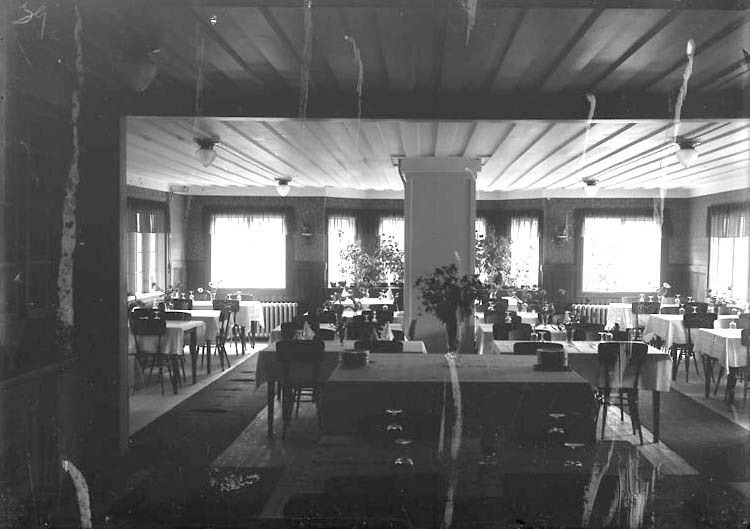 Enligt Bengt Lundins noteringar: "Lyckorna. Interiör av Särla pensionat. Matsalen".