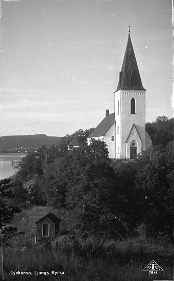 "Ljungs kyrka vitrappad. Vykort Li 7841 Foto BL 763" enligt givarens notering