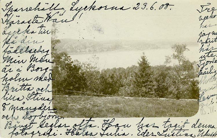 Enligt Bengt Lundins noteringar: "Utsikt från Sparrehäll ov viken.