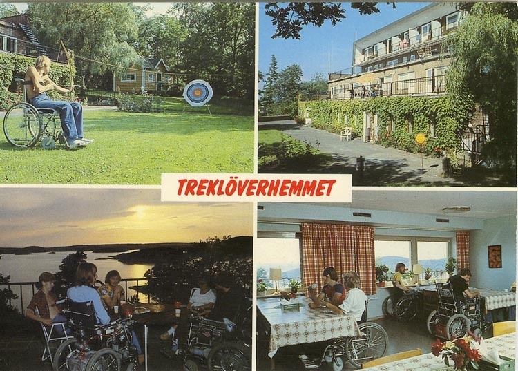Enligt Bengt Lundins noteringar: "Treklöverhemmet. Rehabiliteringscenter för fysiskt handikappade. Fyra bilder. Lyckorna".