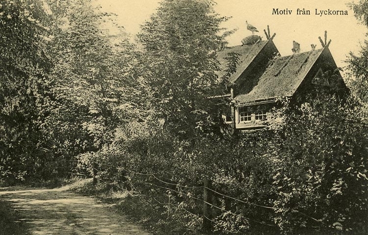 Enligt Bengt Lundins noteringar: "Motiv från Lyckorna. Villa Skogstorp. Lekstuga. Lyckorna".