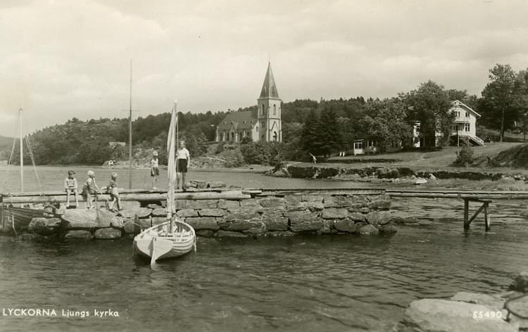 Enligt Bengt Lundins noteringar: "Lyckorna. Ljungs kyrka. Brygga och barn.".