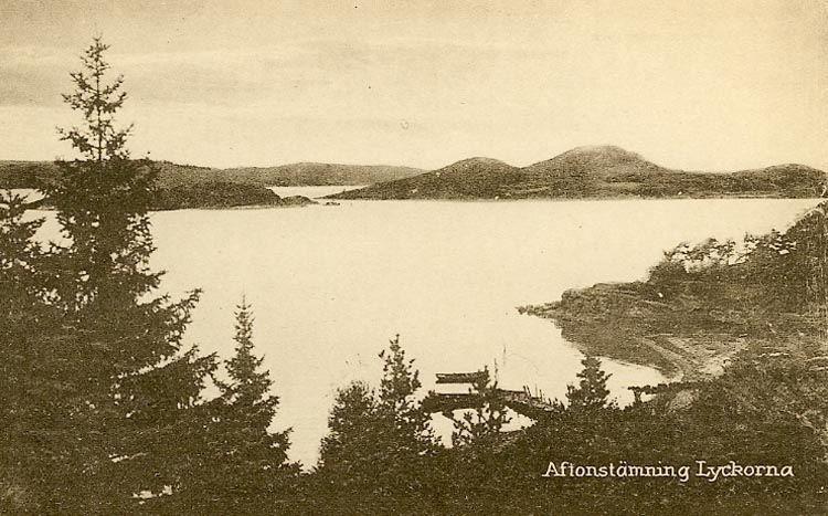 Enligt Bengt Lundins noteringar: "Aftonstämning. Lyckorna. Badstrand och Ulvön".