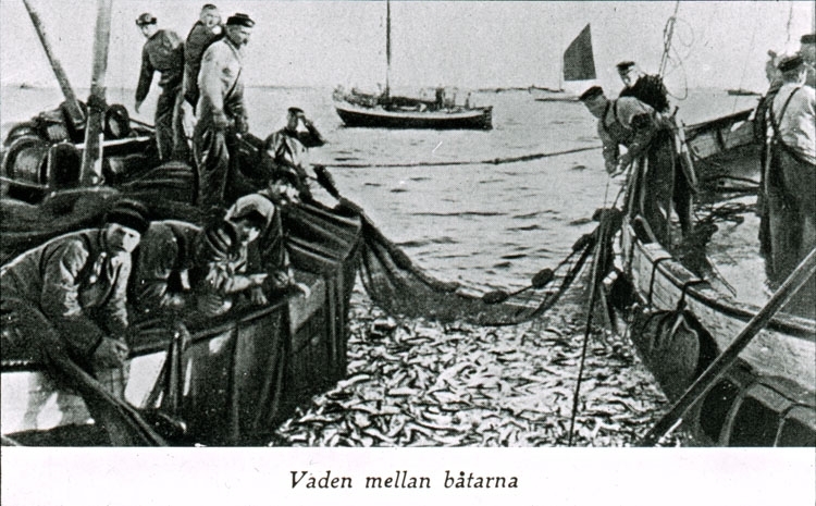 Text på skioptikonplåten: "Vaden mellan båtarna."