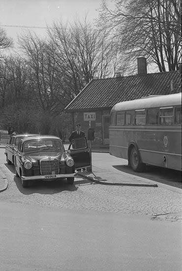 Text till bilden: "Johan Forsell med sin taxibil vid torget. Min morbror". Album 3 bild 28.