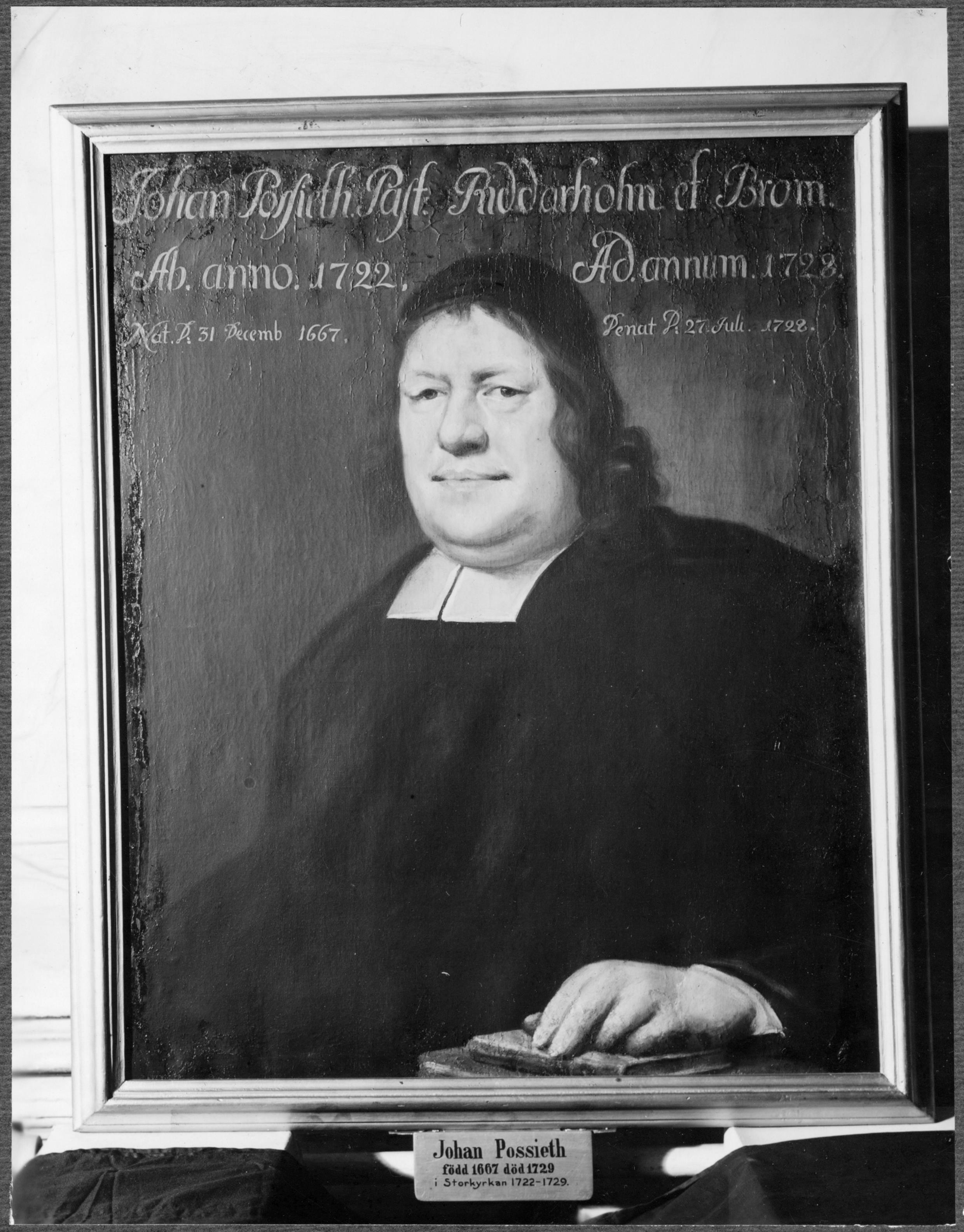 Porträtt föreställande Johan Possieth, kyrkoherde vid Riddarholmsförsamlingen 1722-28.