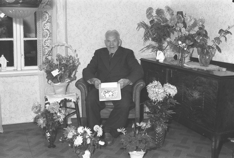Text till bilden: "Edvald Nilsson, Fiskebäck. 80 år 23/10. 1951.10.24"
