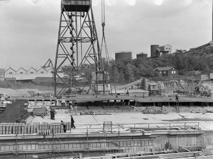 Sörvik. Kölsträckning på stapelbädd IV av fartyg nr. 201 T/T W. Alton Jones.