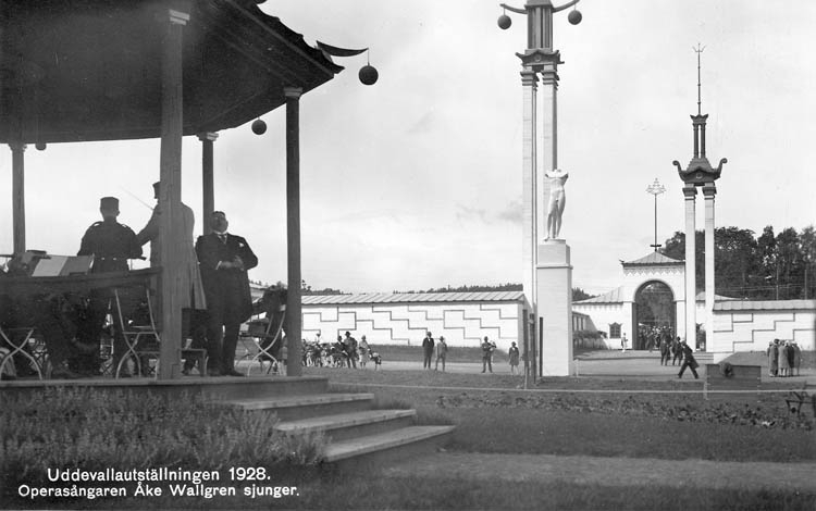 Text på kortet: "Uddevallautställningen 1928. Oprasångaren Åke Wallgren sjunger".