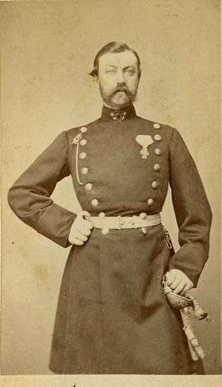 Text på kortets baksida: "Löjtnant Conrad Betzholz. Löjtnant vid 2 lif.Beväringe Regementet. Dödligt sårad vid Lundby 3 juli 1864. Död å Hobro fälltlasarett den 28 juli".