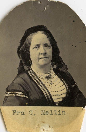 Text på kortets baksida: "Fru Clara Mellin".