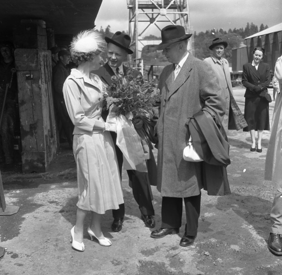 Dop och sjösättning av fartyg 147 M/S Cordelia. Fartygets gudmor är fru Vigård.