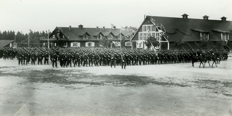 Enligt Bengt Lundins noteringar: "Parad framför manskapsbarack".