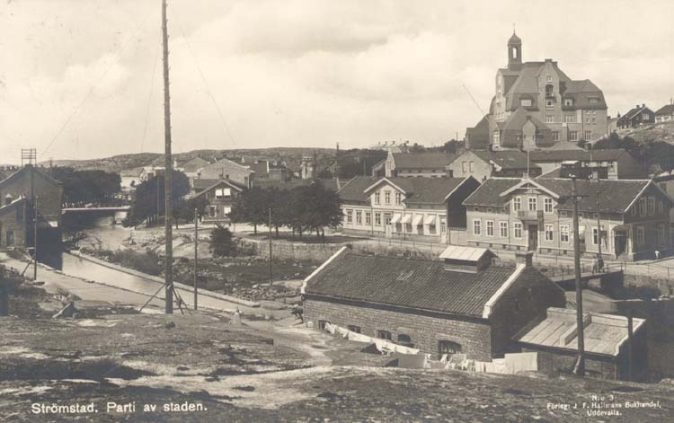 Tryckt text på kortet: "Strömstad. Parti av staden."