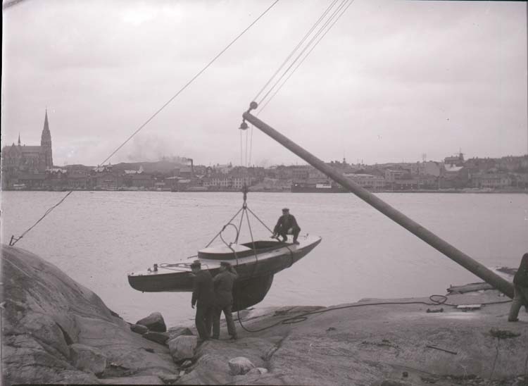 Enligt text som medföljde bilden: "Lysekil. Greta i kran. Okt. 08."