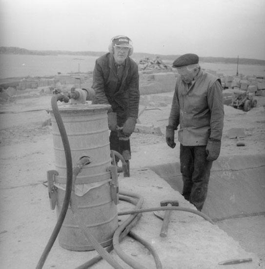 Enligt fotografens notering: "Dammsugare för stenindustrin. t.v. Axel Alexandersson Malmön".