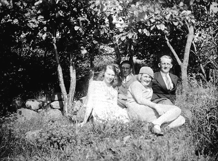 Enligt senare noteringar: "I en lummig vacker grönska solar sig Hjalmar och Elsa Jonasson, samt Johan Börjesson och Alinde Jonasson".