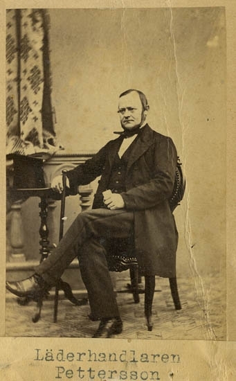 Text på kortets baksida: "Läderhandlaren Pettersson".