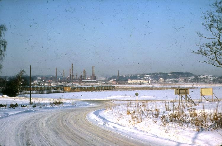 Jan. 1963. Krackern. Distansbild. Förläggningsbaracker, skorstenarna på ugnarna.
