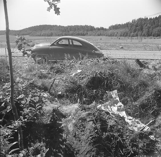 Enligt notering: "Skräp på Bil-hållplatser på riks-2:an 25-7-55".