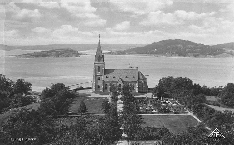 Enligt Bengt Lundins noteringar: "Lyckorna. Ljungs kyrka m segelbåt. Vykort Li 3488 BL 783g".