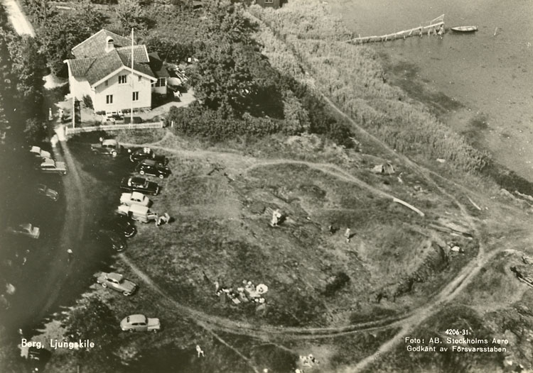 Enligt Bengt Lundins noteringar: "Flygfoto över badplatsen Berg. Ljungskile".