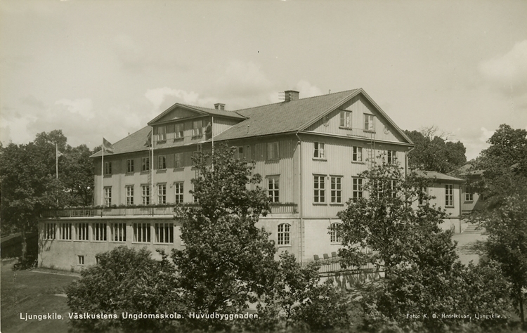 Enligt Bengt Lundins noteringar: "Västkustens Ungdomsskola. Huvudbyggnaden. Ljungskile".