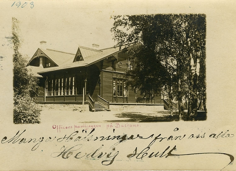 Enligt Bengt Lundins noteringar: "Officerspaviljongen på Backamo".