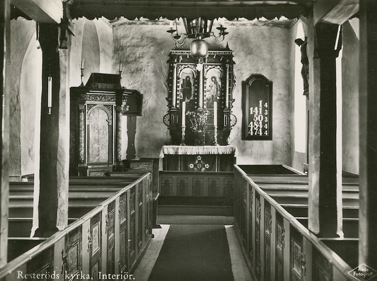 Enligt Bengt Lundins noteringar: "Interiör av Resteröds Kyrka".