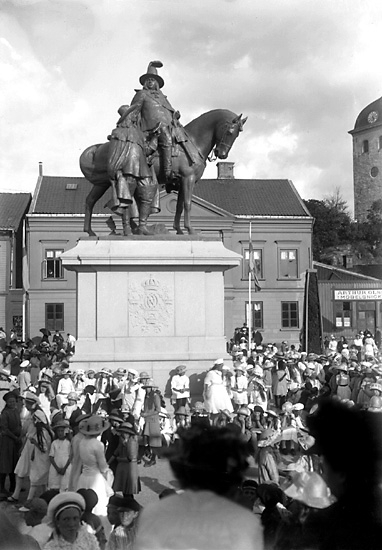 Enligt tidigare notering: "Invigningen av statyn på Kungstorget."