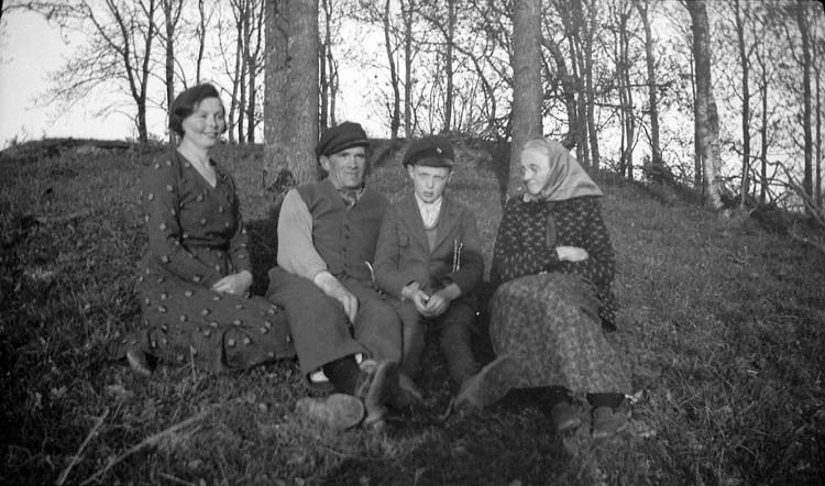 Enligt notering: "Fyra personer i skogsbacke. Ester, Anders, Ave Andersson, Bärby".