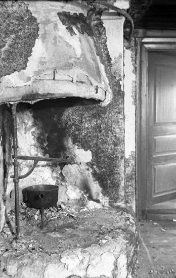 Text till bilden: "Dalslandstugan före flyttning, spis".