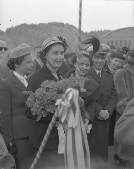 Sjösättning och dop av 120 M/T Bittencourt Sampaio. På bilden syns fartygets gudmor.