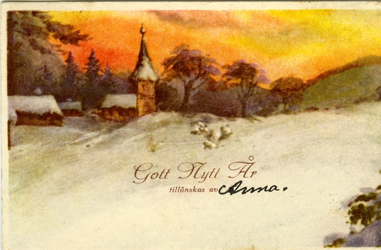 Notering på kortet: Gott Nytt År tillönskas av Anna.