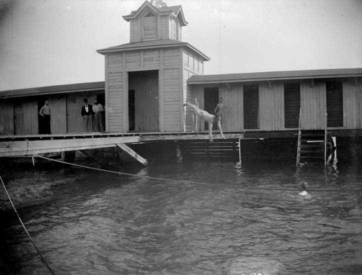 Enligt text som medföljde bilden: "Lysekil. Herrbassinen interiör, Hyllengren stupar 1897."