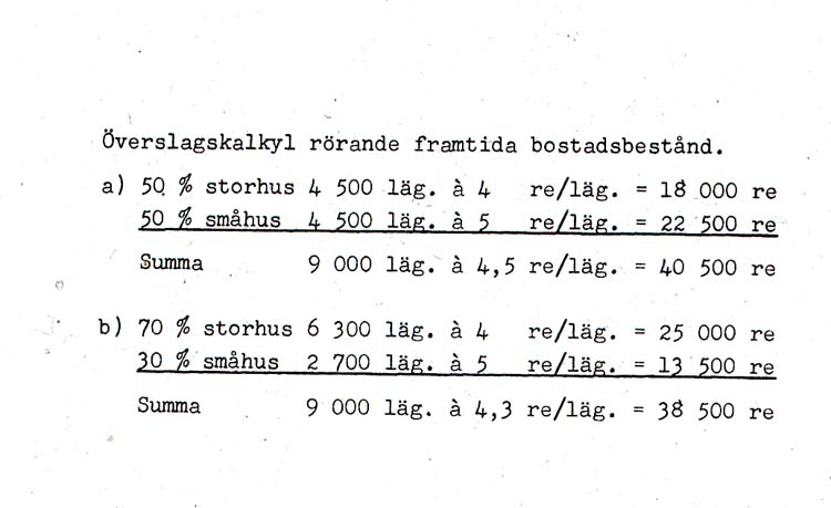 Tabell, översiktskalkyl bostadsbestånd.