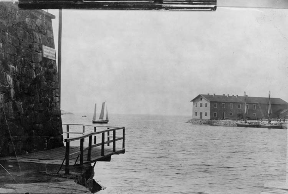 Skrivet på baksidan: Vässing med två sprisegel. Två sillgarnsbåtar. Marstrand