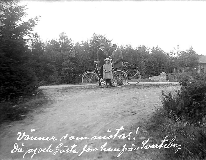 Johans text på fotot: "Vänner som mötas! Då jag och Gösta foro hem från Svarteborg."