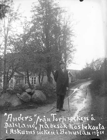 Skrivet på bilden: "Anders" från Torp socken å Dalsland, på besök hos bekanta i Askums socken i Bohuslän 2/6 1924."