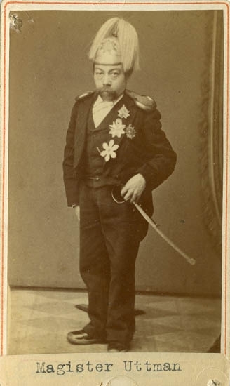 Text på kortets baksida: "Informator Uttman utklädd af Rob. Lindahl vid ett julkalas".