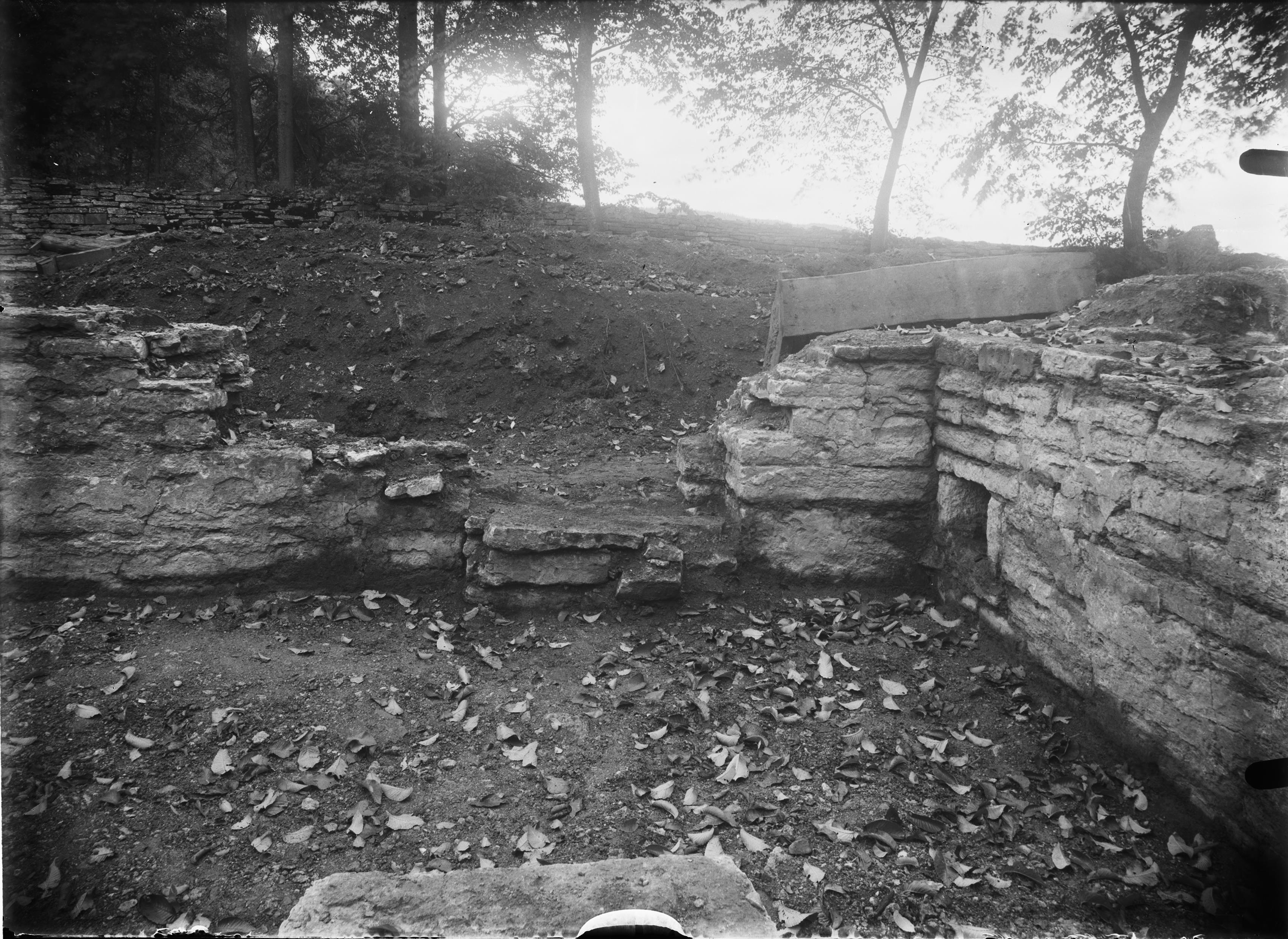 "Vaktrummet" norr om östra förstugan, sydvästra hörnet. Dörren intill förstugan nedtill igenmurad. Från nordöst.