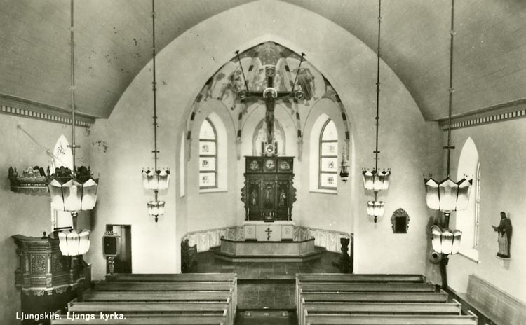 Enligt Bengt Lundins noteringar: "Interiör av Ljungs kyrka efter 1957".