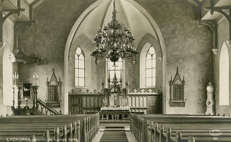 Enligt Bengt Lundins noteringar: "Interiör av Ljungs kyrka före 14/12 1951".