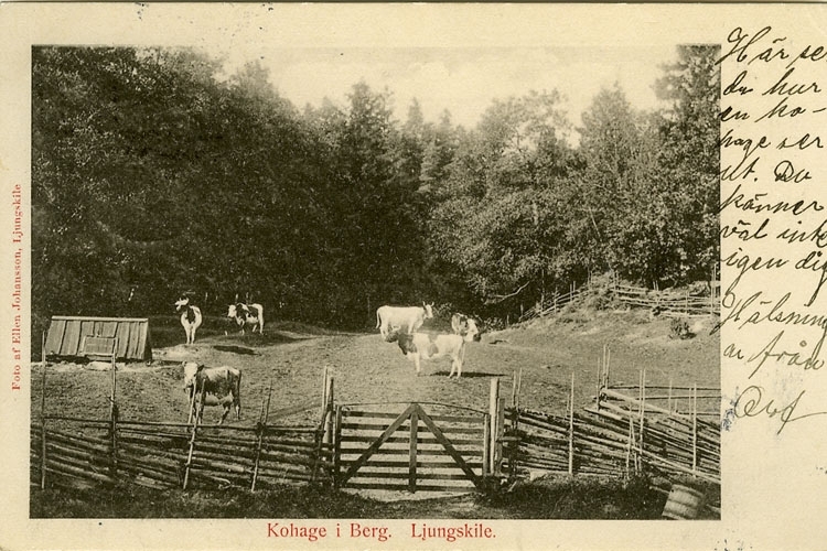 Enligt Bengt Lundins noteringar: "Kohage i Berg. Gårdsvägen till "Myren" vid stora Berg".